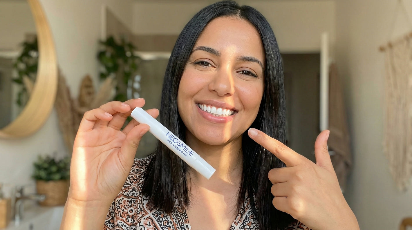 مع Neosmile اتهنّى، الستيلو متاعنا مصادق عليه من وزارة الصحة ويخدم بتركيبة الـ PAP العلمية اللي تبيّض سنّيك بأمان من غير ما تضر اللثة. بياض يجهر ونتيجة فورية، والأهم صفر حساسية وصحتك ديما في أمان